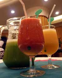 果汁里面含有维生素以及微量元素。但每一百毫升的卡路里数量却不低。如果你仔细阅读手中饮料的标签,你会发现很多“果汁”其实是含果汁饮料。真正果汁可能不超过10%,而糖和调味剂却是其他主要成份。