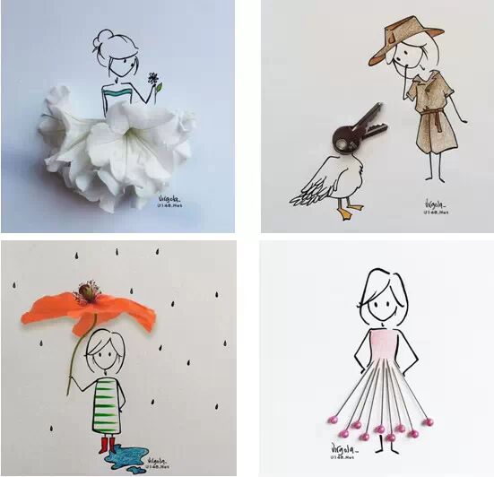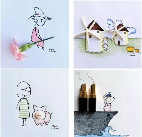 virgola来自意大利,她用笔把生活小物品和漫画里的自己联系起来,赋予它们新的生命,实现千姿百态的美妙梦想。