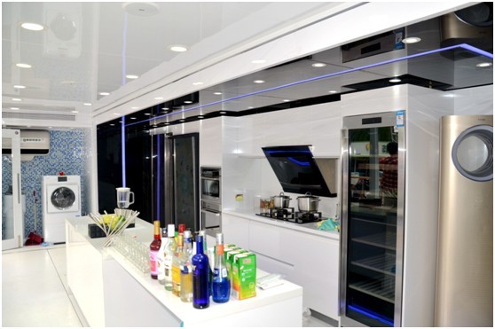 充满着时尚气息的巡展车全局实景图。在这里,你可以领略到“智慧饮食+智慧用水+家庭娱乐+健康空气+衣物护理”五大生态圈的独有魅力,感受到已久违的家的温馨!