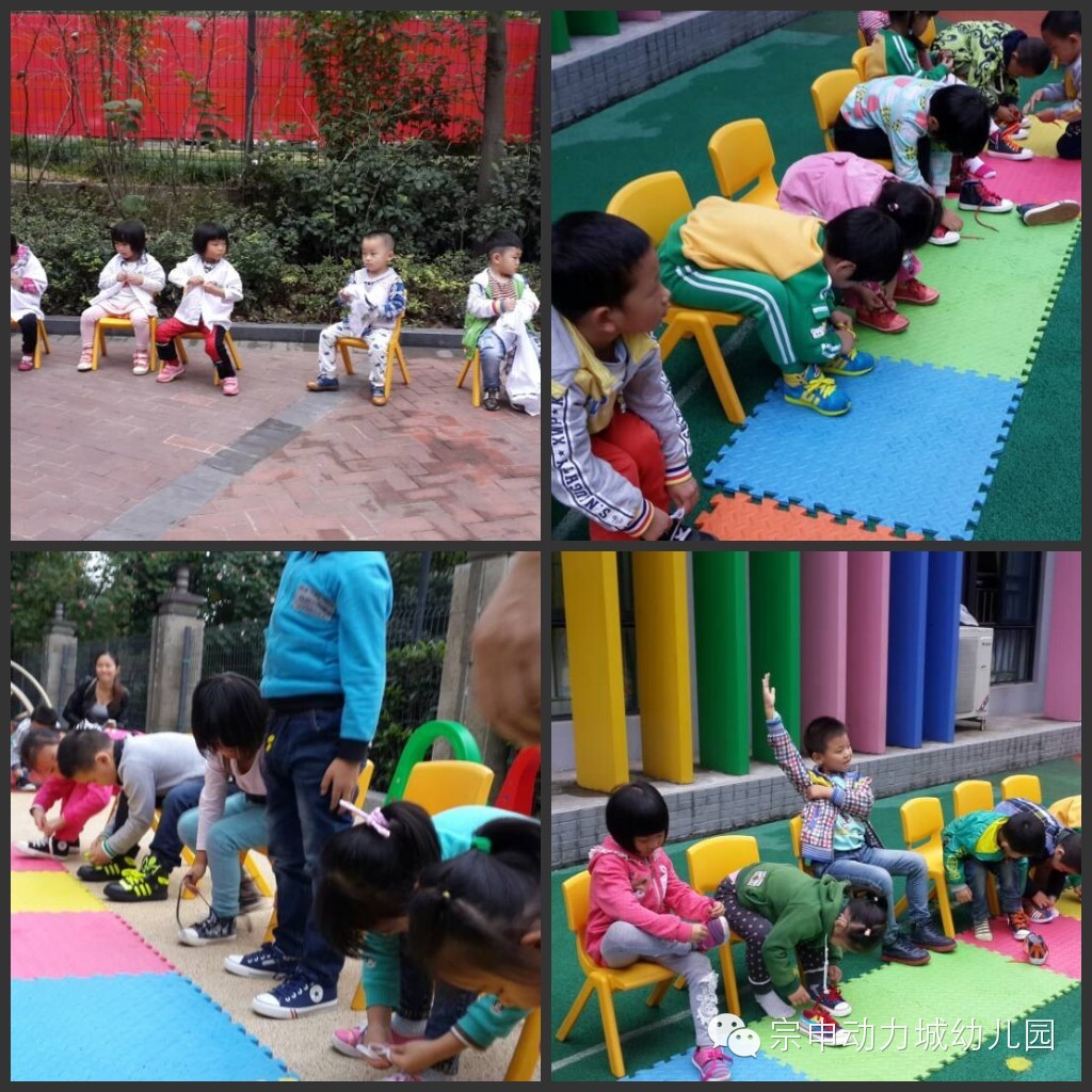 宗申动力城大地幼儿园本学期自理能力比赛,结束了!小班的孩子们比赛了穿鞋子;中班的孩子们比赛了穿衣服、扣纽扣;大班的孩子们比赛系鞋带。