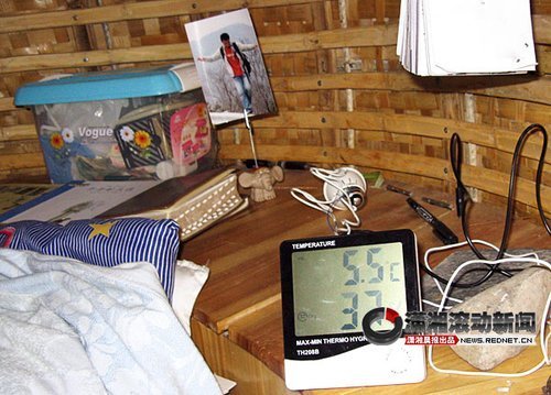12月3日下午,戴海飞的“蛋屋”里显示温度为5.5℃,湿度为37%。