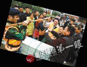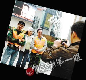 昨天上午,不少从黄桷坪、袁家岗、菜园坝、中兴路、较场口、解放碑沿线经过的市民都会发现一道奇特的风景———两个老外,穿着棒棒偏爱的迷彩劳保服,喊着号子,和另外两个中国年轻人煞有介事地用棒棒扛着一个柱状物体前行……