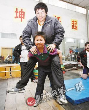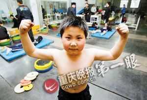 这位9岁零两个月、身高1.35米、体重40公斤的小家伙,是重庆目前所知年纪最小的大力士。不满6岁时,他就可以背起100余公斤的成年人。