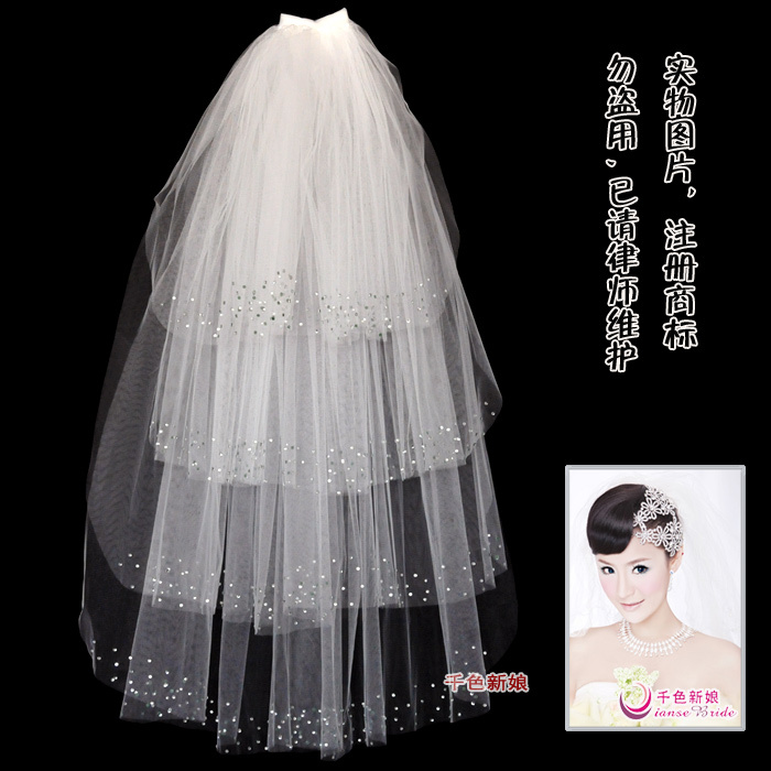 1、转头纱一个  四层晶钻米白头纱-新娘婚纱配饰品头饰新娘发饰