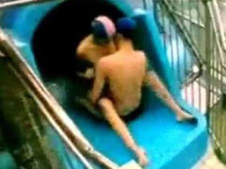 游乐场的监控摄像头拍到,这两人来到水滑梯前,没有很快滑下去,却将身上的泳衣脱掉。女子先是跨坐在男方的身上,之后前后晃动、亲吻,在水滑梯口公然“鸳鸯戏水”,时间长达5分钟,随后两人才从水滑梯滑下。