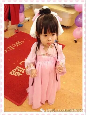 小米,你打扮得这么漂亮,妈妈可是费了不少的心思呢,所以长大后一定要感谢美丽的妈妈。