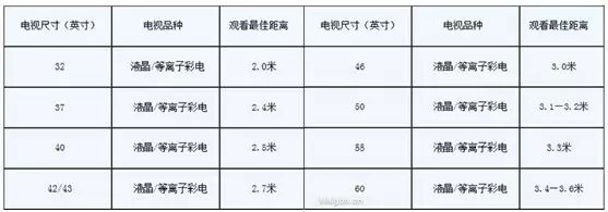 1、选择合适的电视尺寸:选电视一定要搞清楚你家适合多大尺寸,然后再考虑自己兜里的银子。根据住建部和一些组织(有砖家也有学者)对中国家庭的客厅平均面积统计分析,中国家庭的收视观看距离平均的2-3.5米的左右,通过这个距离就能得出家庭购买的电视推荐尺寸在32-55寸左右,选出原则见下表,当然不排除有些土豪不按常理出牌。