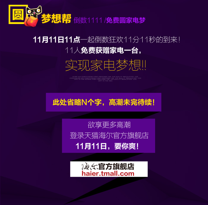 今年双11,海尔官方旗舰店豁出去了,为你高潮24小时,分分钟不停歇!