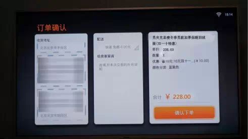前些日子家里新房装修,家电全部换新了,经朋友介绍买了一台55寸海尔阿里电视。朋友说,这台电视跟其他牌子的电视最大的不同是购物功能。 电视买回家之后就赶上了双十一,我和老公打算试一试。进入VIP购物广场之后,可以直接用手机淘宝扫一扫登录,很方便。他们还送我2410元阿里V代金券,感觉像是捡了便宜。 这个电视的遥控器上有语音键,对着它说一声:我要买男装。男装分类就在电视上就出现了!按遥控器的向下键,就能看这款商品的详细介绍,按方向键右,就直接进入评价界面。衣服的细节在电视上显示比电脑上清楚多了,屏幕又大,分辨率又高,应该不会有色差问题了吧。 我跟老公精挑细选了之后,最后买了一件羽绒服和一件棉衣,本来238元,下单之后发现变成了228元,原来那个V代金券抵了10元 支付也比较简单,直接用手机支付宝扫描电视上出现的二维码。 双十一当天下午3点多下单,13号上午就收到货了!这速度也是蛮快的。拆开包装一看,衣服也很满意啊!跟电视上看到的一模一样,颜色没有偏差,质量也很好。感觉比在淘宝上购物更让那个人放心! 我本来就是一个喜欢逛淘宝的人,自从尝到了电视购物的甜头之后,晚上下班吃完饭我就打开电视淘一会儿,感觉都要上瘾了! 感谢海尔阿里电视给我生活带来的乐趣!希望海尔继续能带来更多好产品,支持海尔!