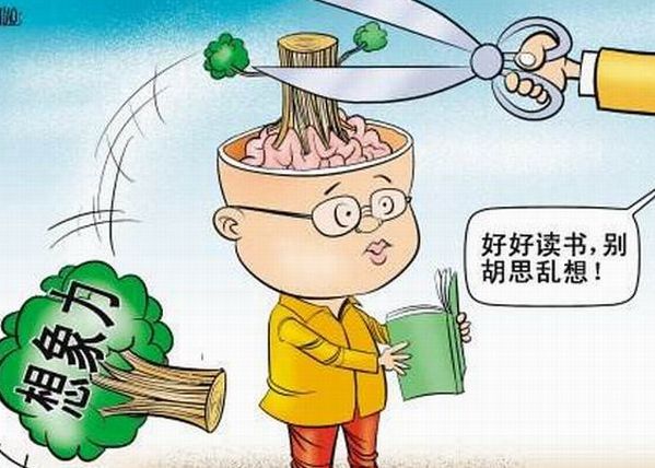 我们总说“让孩子插上想象的翅膀”,却总是在孩子异想天开时给孩子冷冰冰的大红叉;我们总叹服文学家的天马行空、发明家的奇思妙想,却又给孩子的想象硬生生设定各种条条框框。