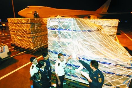 江北机场,海关人员为重庆造笔记本电脑验关。