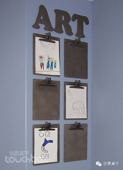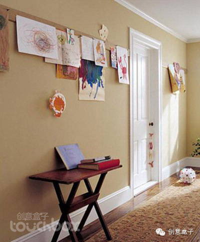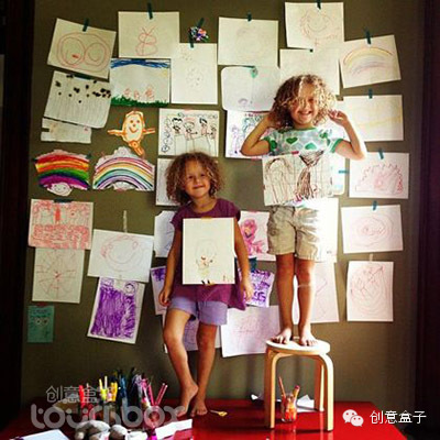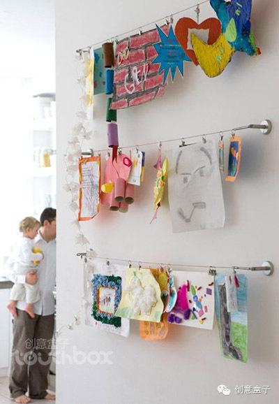 对孩子们来说,如果能将他们创作出的作品在家中挂出来,那真是一种很有成就感的事情呢,小家伙们创作的热情会得到极大的鼓励,那么,在家中找到一个好的展示空间以及陈列方式是父母们需要学习的,看看下面的做法有没有让你得到些启发。
