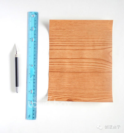 所用材料:木纹贴纸一卷,白纸,裁刀(小一点的孩子可以由父母帮助裁切)